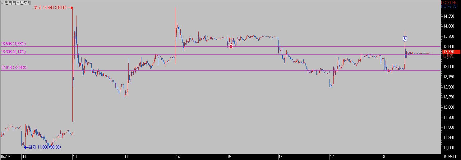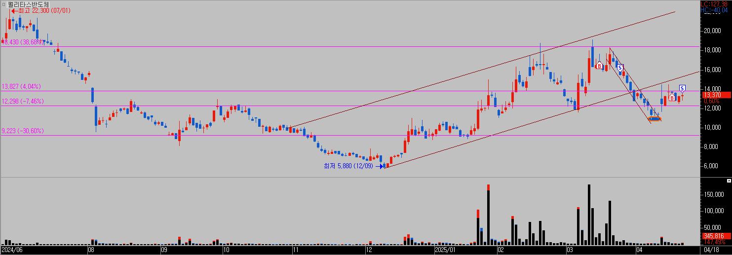 | 퀄리타스반도체 | 2025.04.15. | 13,580 | 2025.04.18. | 13,630 | 4 | +0.20% |