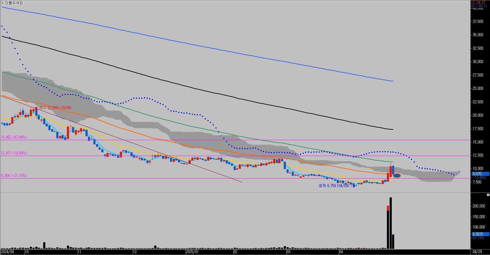 - 최근 거래량 유입과 함께 우하향 추세를 벗어났음