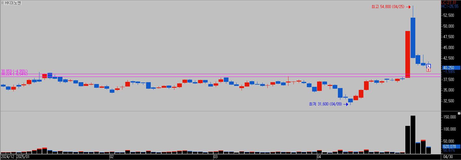 | HK이노엔 | 25.04.30. | 40,550 | 25.04.30. | 39,950 | 1 | -1.63% |