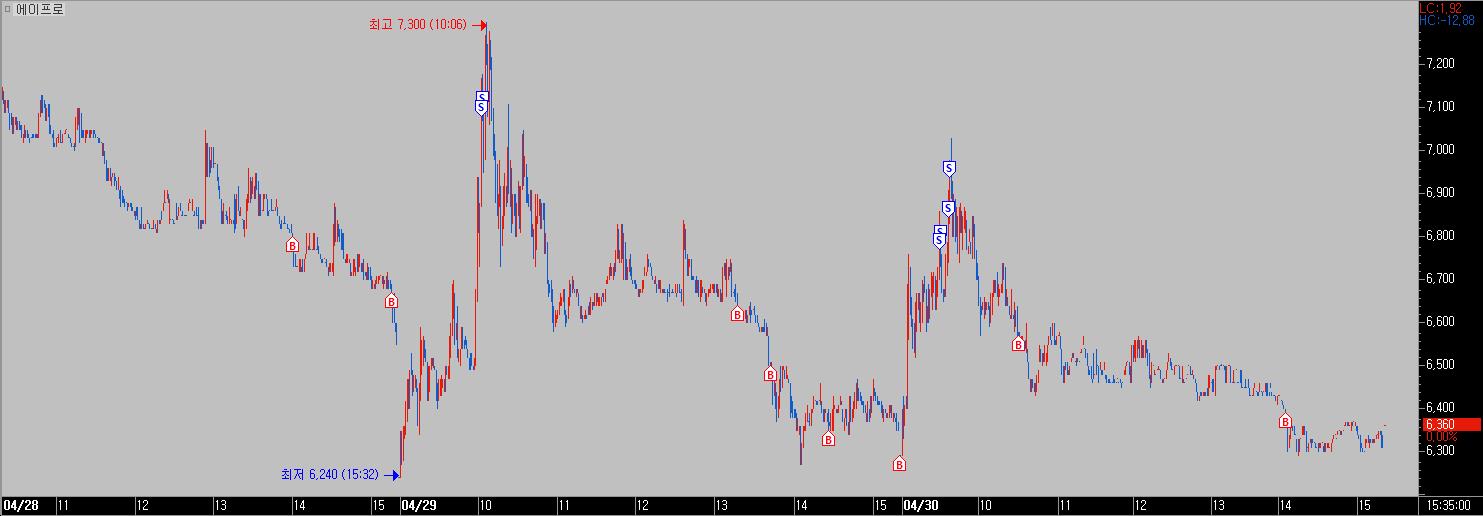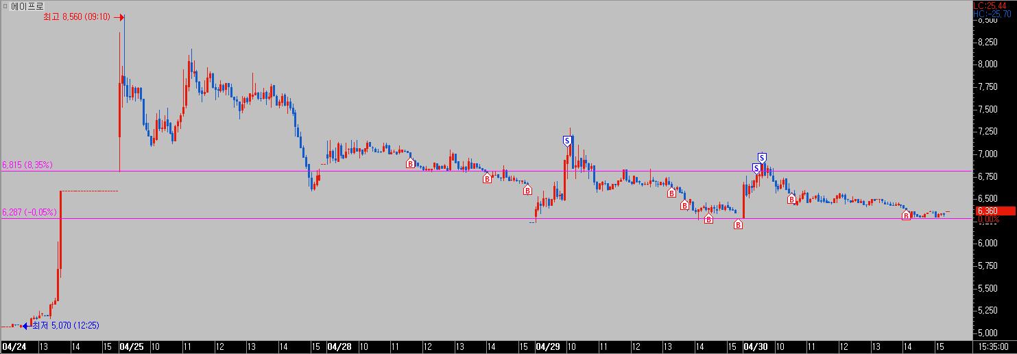 | 에이프로 | 25.04.29. | 6,409 | 25.04.30. | 6,842 | 2 | +6.38% |