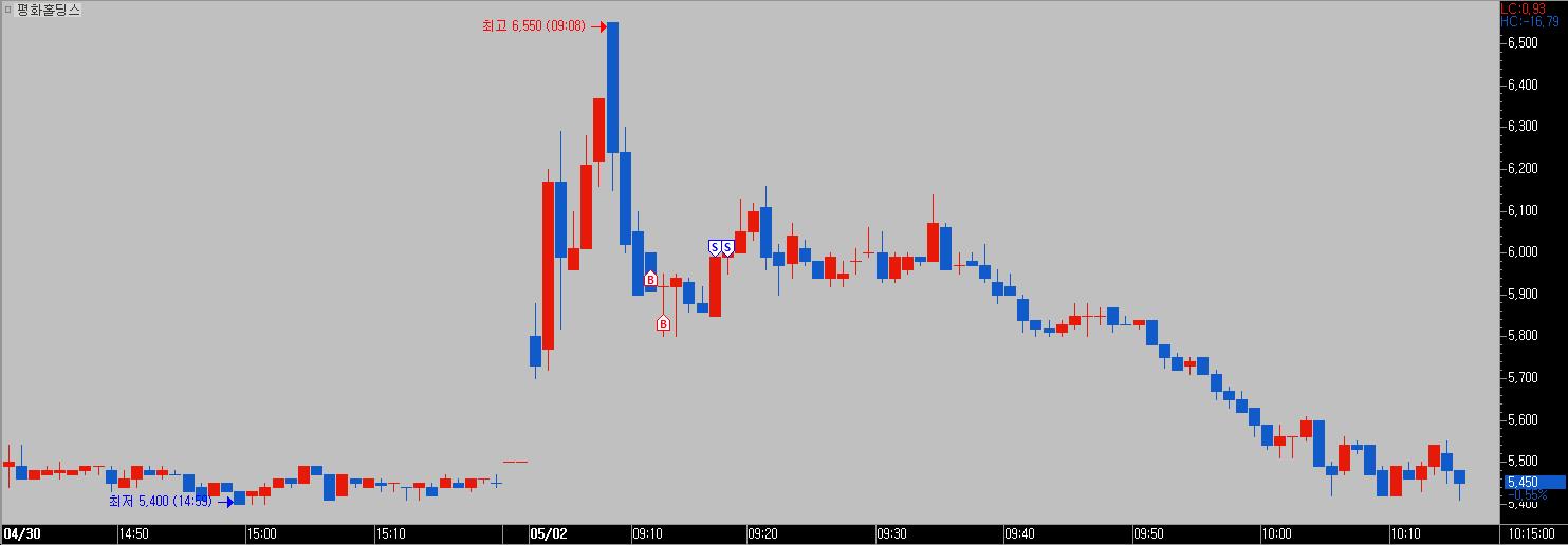전체적으로 아직 뭔가 어설픈 부분이 많았지만, 예상한 시나리오 안에서 트레이딩했다는 점에서 꽤 재미있었습니다. 이번에 매매한 평화홀딩스는 별도의 리서치 없이, 슈팅 후 눌림 타점만 보고 진입했기에 기술적 반등 매매에 집중했습니다.