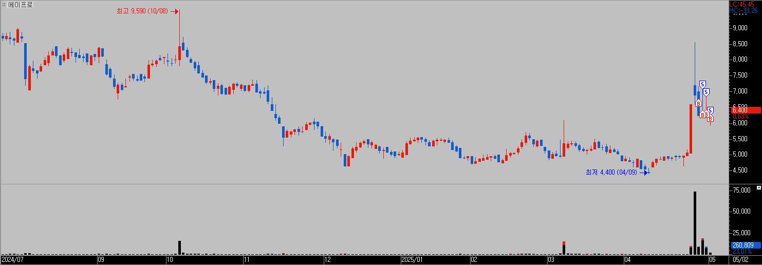 | 에이프로 | 25.05.02. | 6,306 | 25.05.02. | 6,249 | 1 | -1.55% |