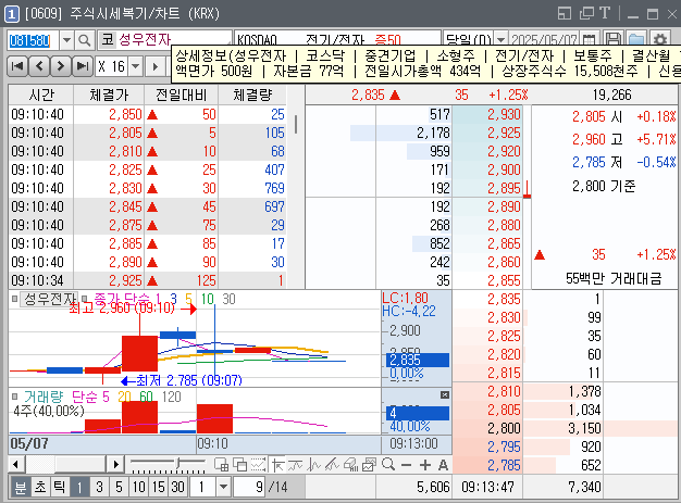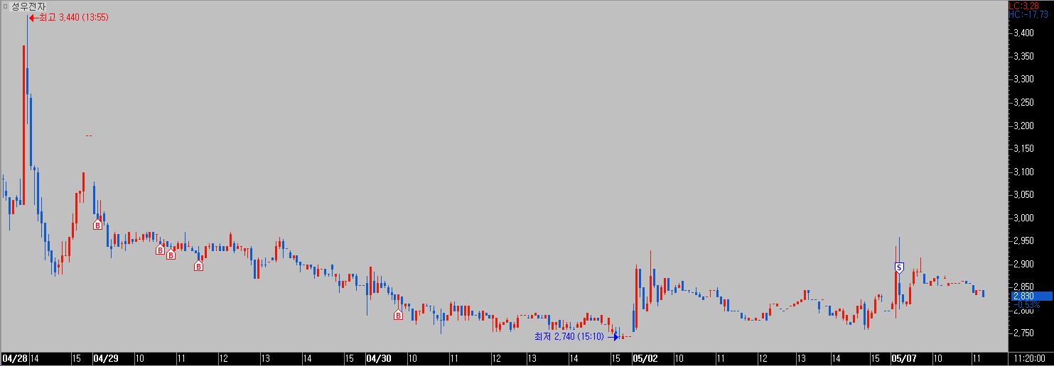 | 성우전자 | 25.05.07. | 2,880 | 5 | -0.75% | ||