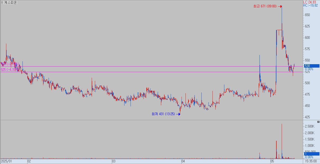 케스피온은 대한민국 대표 무선 통신 솔루션 기업으로, 이날 주가가 29.89% 올라 617원에 거래됐습니다. 거래량이 실리며 장대양봉을 기록했습니다. 케스피온은 27년간 R&D 중심의 무선 통신 기술 개발에 주력해 왔습니다. 이동통신용 소형 휴대폰 안테나를 주력 사업으로 시작해 무선 공유기, 차상 안테나 등 옥외 무선 통신 솔루션과 군 통신 전자기기 분야로 사업을 확장했습니다. 5G 시대를 맞아 고성능 안테나 기술 개발에 집중하며 시장 변화를 선도하고 있습니다. 또한 자율주행과 커넥티드 카용 차상 안테나 솔루션과 무선 공유기 사업을 확대하며 안정적인 무선 네트워크 구축에 기여하고 있습니다. 군 통신 전자기기 분야 진출을 통해 고도의 보안성과 신뢰성을 확보했습니다.