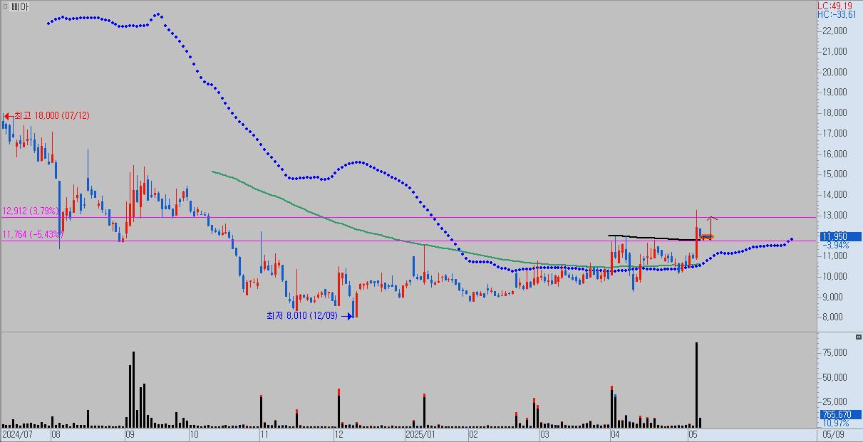 - 앞에서 매물 소화하는 모습 보였고, 최근 거래량 동반하며 주가 우상향 중임