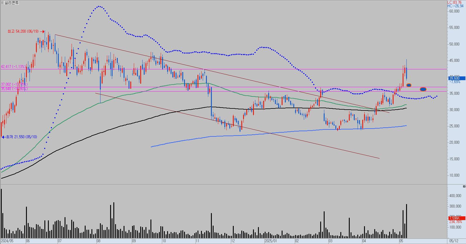 실리콘투는 MK시그널의 AI 기반 포트폴리오 ‘AI 1호’에 편입된 이후 상승세를 보였습니다. 4월 16일 매수 추천 이후, 4월 29일 매도 전략까지 15.01%의 수익률을 기록했으며, 이후에도 주가는 상승세를 이어가고 있습니다. 5월 2일 기준으로는 4.34% 상승한 37,300원을 기록했으며, 최근에는 장중 43,650원까지 상승한 바 있습니다.