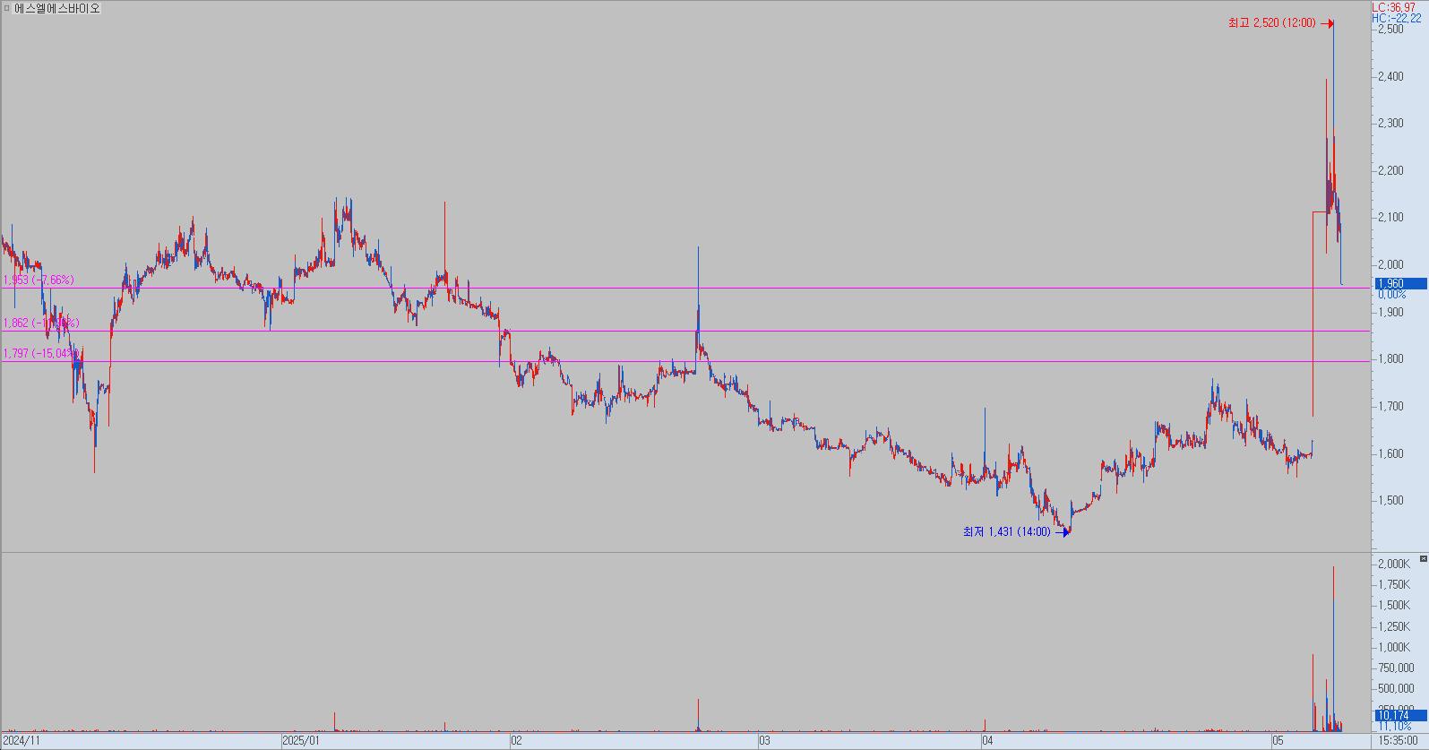 에스엘에스바이오는 2025년 5월 9일, 노보노디스크와의 ‘위고비’ 품질관리 독점 계약 소식에 힘입어 상한가를 기록했습니다. 이날 오전 10시 28분 기준 주가는 전일 대비 29.99% 상승한 2,115원에 거래되었습니다. 이는 위고비의 국내 수요 급증과 유통 매출 확대에 따른 수혜로 분석됩니다.