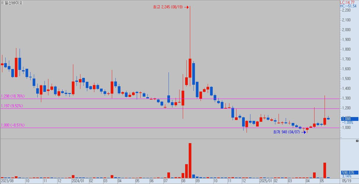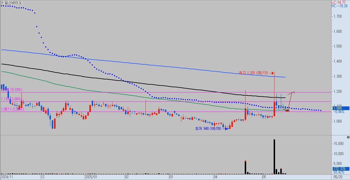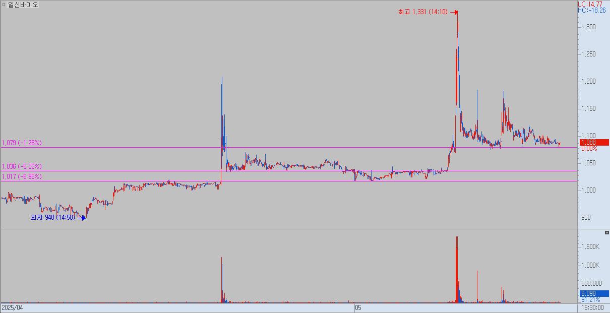 일신바이오는 5월 13일 장마감 기준 전 거래일보다 95원(9.18%) 상승한 1,130원에 거래를 마쳤습니다.