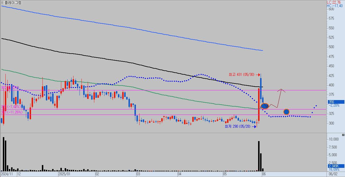또한, 지난 5월 29일에는 대웅, 신풍제약우, 일신바이오 등과 함께 플레이그램도 상한가를 기록했습니다. 이는 당시 국내 증시가 상승 전환한 가운데, 코스피지수가 장중 2700선을 돌파하면서 투자심리가 급격히 회복된 영향으로 해석됩니다.