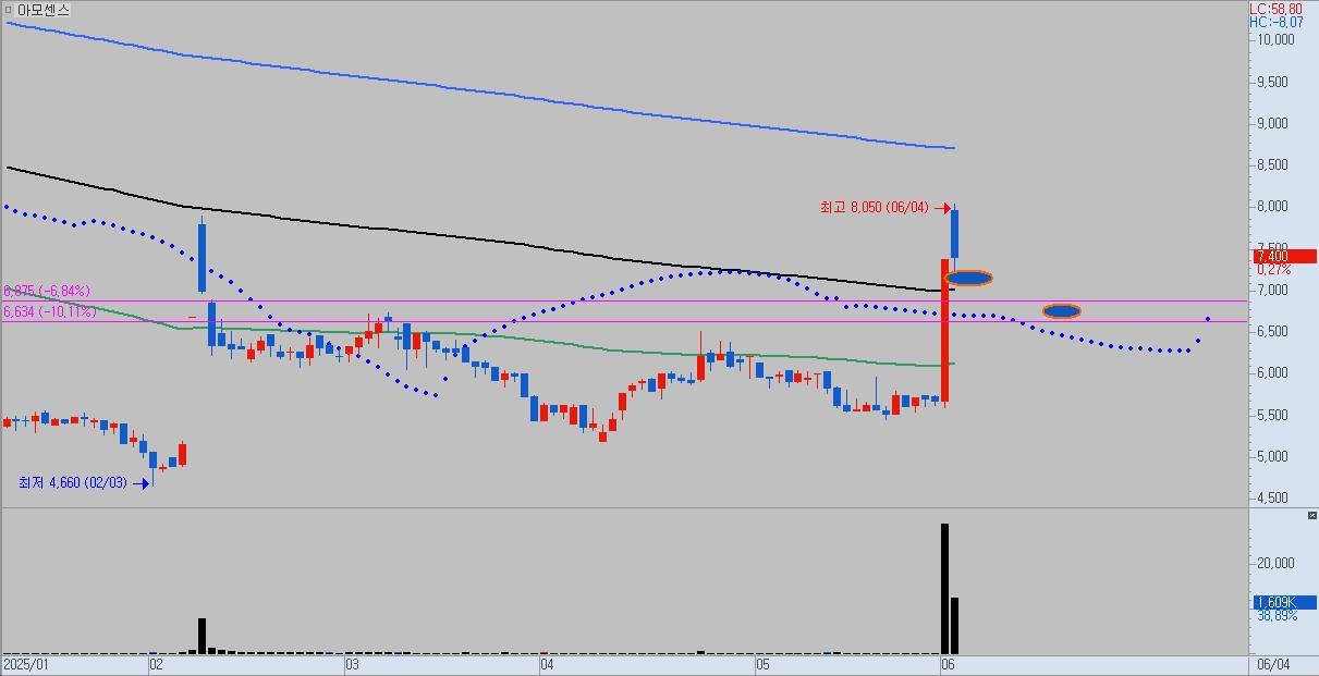 아모센스는 6월 2일 코스닥 시장에서 전일 대비 29.93% 상승한 7,380원에 거래를 마쳤습니다. 장중에는 21.48% 상승률을 기록하며 상한가를 달성했습니다. 이날 고체산화물연료전지(SOFC) 테마가 전체적으로 4.62% 상승세를 보인 가운데, 아모센스가 테마 내 대표 종목으로 주목받으며 강한 매수세를 이끌었습니다.