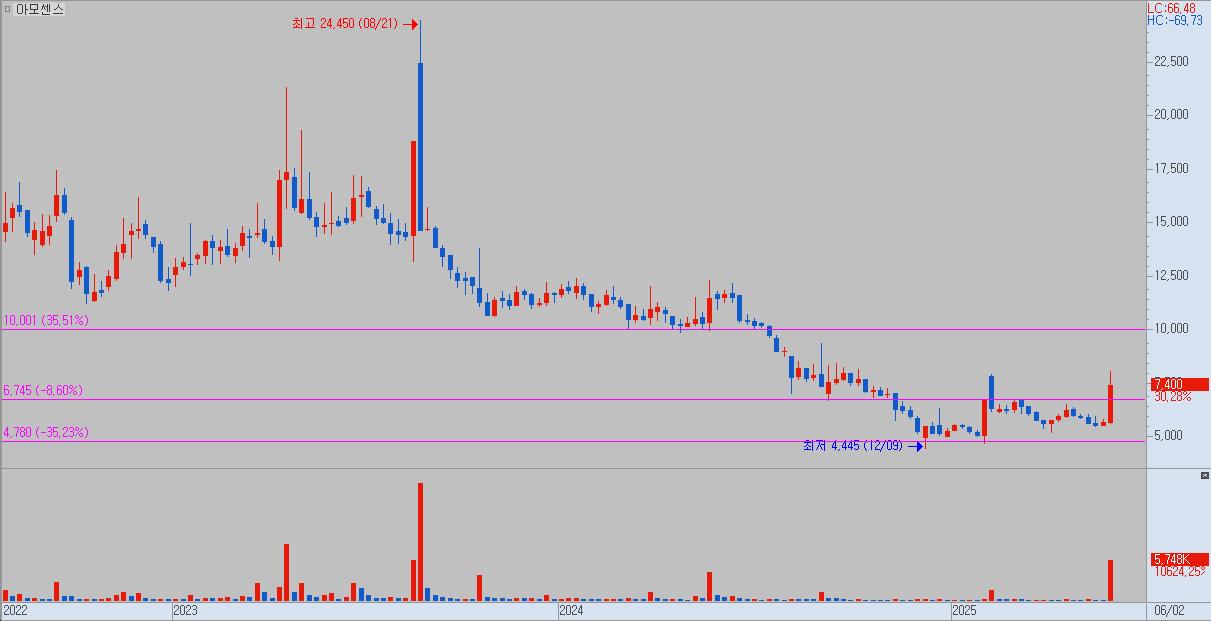 아모센스의 주가는 장기 박스권을 돌파하려는 움직임을 보이고 있으며, 에너지 부문과 전장 부문 모두에서 실질적인 성과와 신규 계약이 확인되면서 투자자들의 관심이 집중되고 있는 상황입니다.