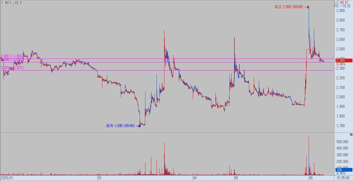 2025년 5월 30일, 에이스테크는 케이엠더블유와 함께 상한가를 기록했습니다. 이날 통신장비 테마주가 전반적으로 강세를 보였으며, 에이스테크는 29.8% 상승했습니다. 오이솔루션, 이노와이어리스, RFHIC 등도 큰 폭의 오름세를 보였습니다. 최근 조정을 받았던 통신장비 섹터는 이날 3.39% 상승하며 강한 반등세를 나타냈습니다.