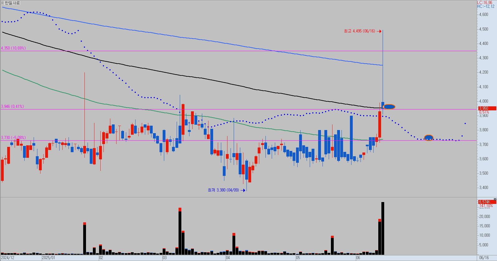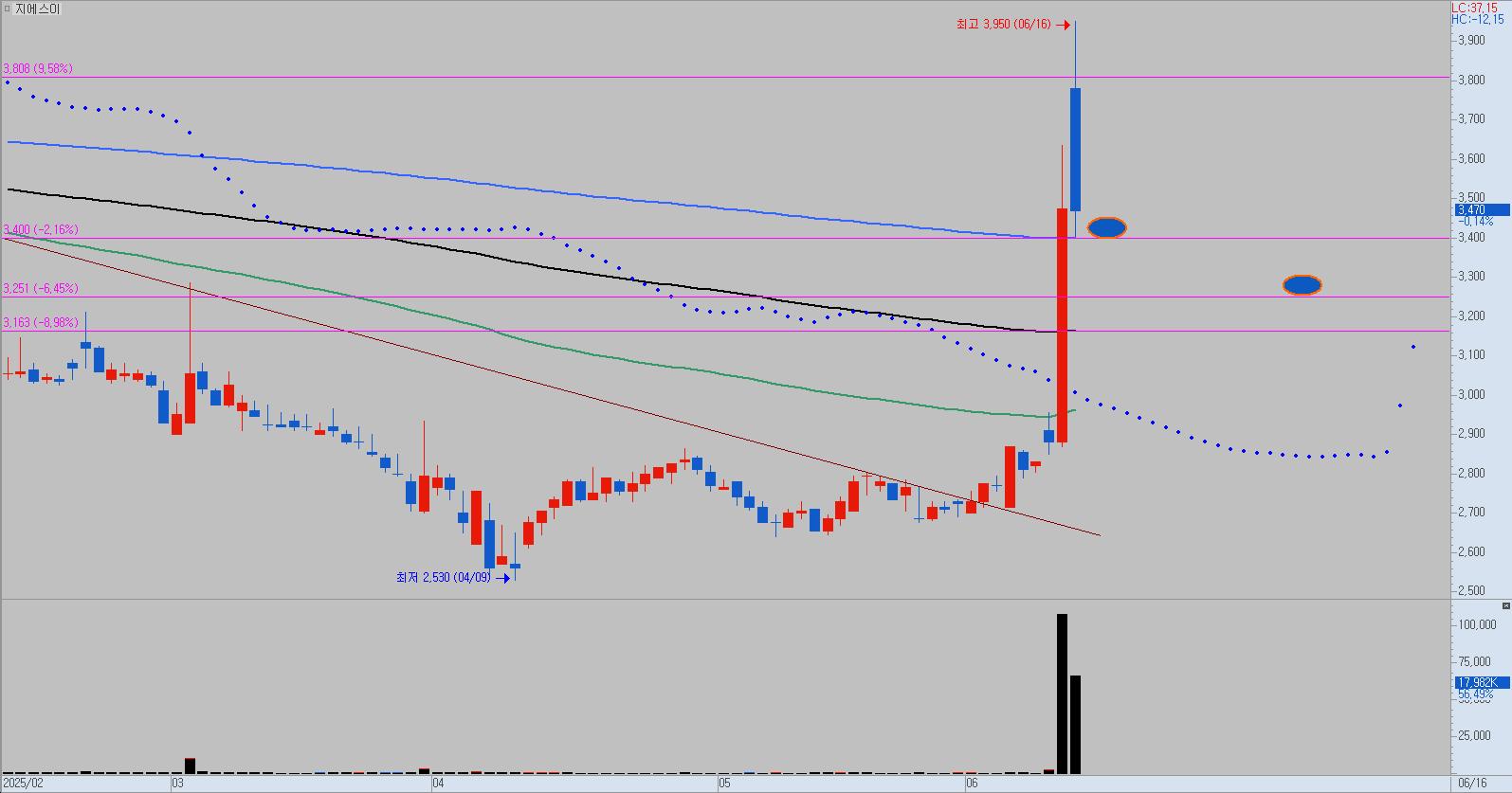 - 슈팅이 나온 뒤 장기 이평선에서 지지받는 모습 보임. 앞선 매물대 소화한 흔적도 확인됨