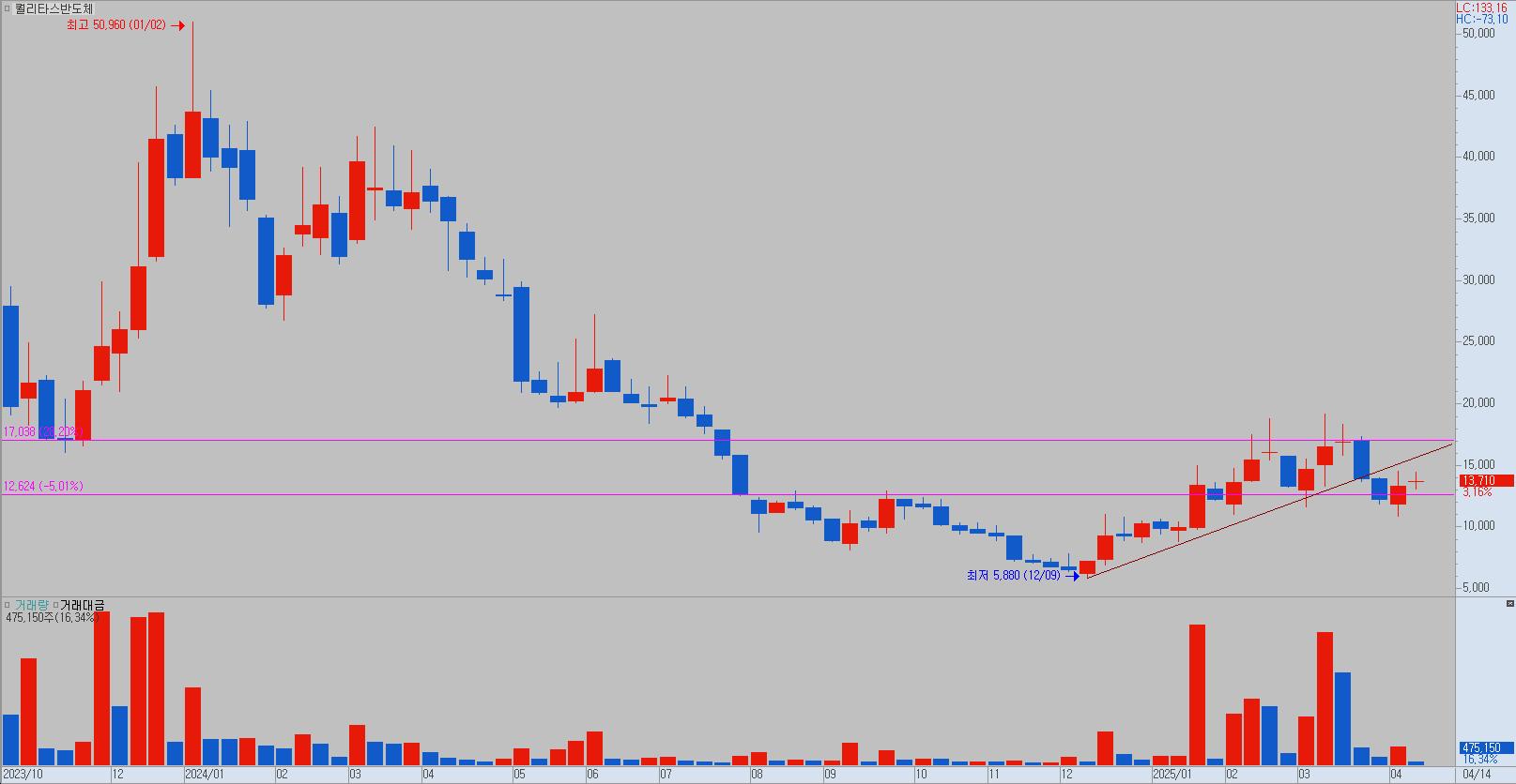 도널드 트럼프 전 대통령이 중국을 제외한 국가에 90일간 관세 유예를 발표하면서 국내 반도체 관련주들이 일제히 강세를 보였습니다. 퀄리타스반도체 역시 17% 이상의 급등세를 기록하며 투자자들의 관심을 끌었습니다. 특히 온디바이스 AI 기술과 관련된 인터페이스 IP 기술력을 보유하고 있어, 관련 테마에서도 높은 평가를 받고 있습니다.